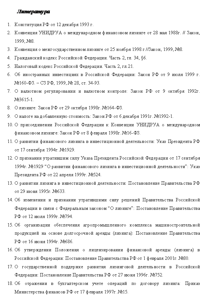 [6] Закон РФ от 08.02.98г №16-ФЗ «О присоединении Российской Федерации к Конвенции УНИДРУА о международном финансовом лизинге».