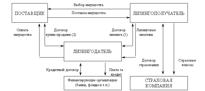 Общая схема лизинговой сделки и финансовых потоков приведена на рисунке.