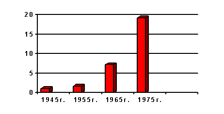 В послевоенное время торговый флот развивался быстрыми темпами (в млн. рег.т):