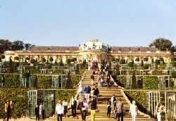 Потсдам расположен в получасе езды от Берлина. Город стал по-настоящему красивым в эпоху барокко, когда здесь построили летнею резиденцию прусских королей "Сан Суси". Дворец возвышается над виноградником, спускающимся шестью террасами. Прекрасный парк площадью 290га. Парк пересекают дороги и аллеи, ведущие к маленьким садикам с фонтанами, мраморными скульптурами, бюстами и даже обелисками.