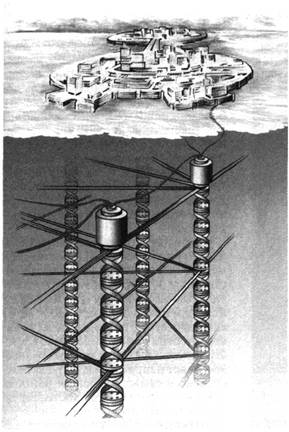 Что же будет представлять собой эта необычная электростанция? Металлическую платформу из готовых секций с оборудованием для выработки электроэнергии погрузят на глубину и закрепят с помощью якорей. Она не помешает свободному проходу пассажирских, грузовых и военных судов с большой осадкой. А как быть с рыболовецким флотом? Ведь во время промысла рыболовные сети могут причинить электростанции серьёзный ущерб, и при этом пострадает само рыболовное снаряжение. Чтобы исключить возможные аварии, станцию предполагается обозначить на поверхности океана буями со световой и радиоэлектронной сигнализацией.