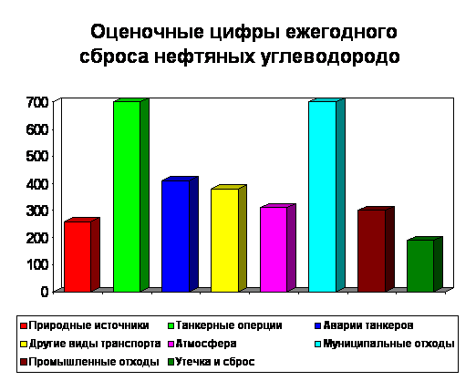 Загрязнение возникает также в результате судоходства и сброса отходов море. около 600 тыс. т нефти ежегодно попадет в океаны в результате обычных морских перевозок, аварий и незаконного слива.