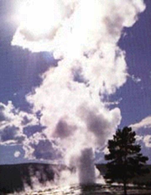 Горячие источники и гейзеры появляются всюду, где вода через сложный лабиринт трещин и расселин находит выход на поверхность земли. При этом температура ее иногда троекратно превышает точку кипения. Распространяющиеся пузырьки пара выталкивают воду через любую доступную трещину в земле. Если это широкая скважина, то из земли бьет горячий источник, а если маленькое отверстие, то вода гейзера пробивается вверх через регулярные промежутки времени. Самый знаменитый гейзер Йеллоустонского парка называется "Верный служака": по нему можно проверять часы. Через каждые 65 с половиной минут он ровно в течение 4-х минут выбрасывает вверх эффектную струю воды. Особенно сильное парообразование можно наблюдать в прохладные месяцы - весной или зимой.