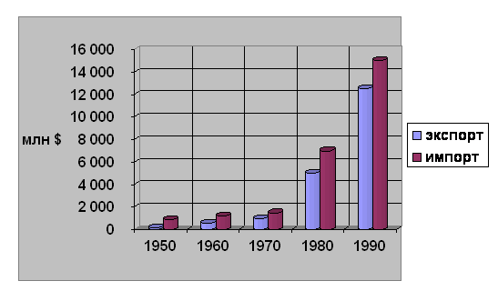 Вот сравнительный график экспорта и импорта за разные годы существования страны