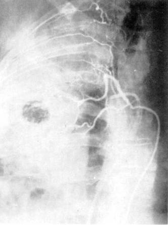 Рис. 7. Селективная ангиография бронхиальных артерий.