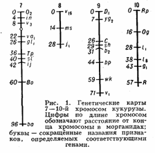 Генетические карты хромосом - схемы относительного расположения сцепленных между собой наследств. факторов — генов. Генетические карты хромосом отображают реально существующий линейный порядок размещения генов в хромосомах и важны как в теоретических исследованиях, так и при проведении селекционной работы, т. к. позволяют сознательно подбирать пары признаков при скрещиваниях, а также предсказывать особенности наследования и проявления различных признаков у изучаемых организмов. Имея Генетические карты хромосом, можно по наследованию «сигнального» гена, тесно сцепленного с изучаемым, контролировать. передачу потомству генов, обусловливающих развитие трудно анализируемых признаков; напр., ген, определяющий сморщенный эндосперм у кукурузы и находящийся в 9-й хромосоме, сцеплен с геном, определяющим пониженную жизнеспособность растения. Многочисленные факты отсутствия (вопреки законам Менделя) независимого распределения призна