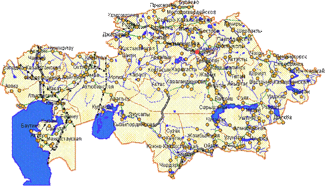 В Казахстане имеются обширные водоемы и множество рек. На западе и юго-западе территории на протяжении 2340 км, почти от устья великой русской реки Волги до залива Кара-Богаз-Гол в Туркменистане, земли Казахстана омывает Каспийское море, являющееся самым большим озером на Земном шаре и названное морем за свою величину. В пределах Казахстана в Каспийское море впадают реки Урал с притоком Илек и Эмба. Начиная с 1978 года идет массовый подъем уровня Каспийского моря со средней скоростью 13-14 см в год. За указанное время уровень моря вырос на 2,5 метра, в результате его береговая линия продвинулась на 20-40 километров. По прогнозам ученых повышение уровня Каспийского моря будет продолжаться еще 25-30 лет. На востоке от Каспийского моря, в песчаной пустыне лежит являющееся в недалеком прошлом третьим по ряду озер Земного шара - Аральское море, занимавшее в середине ЗО-х годов нынешнего столетия 65 тысяч квадратных километров площади (сегодня от него осталось чуть более половины). Резкое сокращение в 60-80 годах притока пресной воды по основным артериям, по которым тысячелетиями .заполнялось Аральское море, рекам Аму-Дарья и Сыр-Дарья, а также полное прекращение поступления вод от таких крупных рек Средней Азии и Казахстана, как Чу, Талас и Сары-Су, привели к нынешнему плачевному положению этого Великого озера. В южных песках Центрального Казахстана находится еще одно огромное озеро земли - Балхаш, нынешняя поверхность которого равна 18,2 тыс. кв. км. Из других крупных озер Казахстана далее можно назвать озера Зайсан (на востоке), Алаколь (на юго-востоке), Тенгиз (в центре республики). Всего же в Казахстане насчитывается почти 7 тысяч природных озер, общая площадь водной поверхности которых превышает 45 тыс. кв. км.