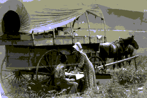 Впервые европеец, а именно испанец Франко де Коронадо проник в Канзас из Мексики в 1541 году; следующее посещение его европейцами (французами) относится к самому началу XVIII века. В 1803 году он достался Соединенным Штатам, как часть купленной ею у Франции громадной, с неопределёнными границами, области Луизиана. В начале XIX века он был населен только индейцами. С двадцатых годов через него проходит дорога караванов, направляющихся на дальний запад или обратно. Около 1830 года начали селиться там миссионеры и пионеры. Открытие в 1848 году золота в Калифорнии направило туда волну золотоискателей, которые проходили через Канзас. Последний таким образом приобрел значение важной дороги, и вместе с тем и в него двинулась волна переселенцев.