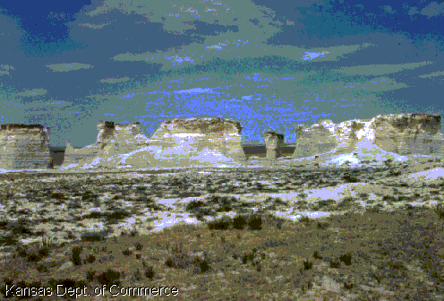 Коллекции Европейского, Азиатского и Американского искусства хранятся в филиале университета Канзаса, мезее искусства в городе Лоуренс. Музей Искусства в Уичите- самый большой музей штата и известен своей коллекцией американского искусства. В музее истории Канзаса большая коллекция археологических реликвий. Помимо музеев в штате есть много других мест, представляющих интерес для туристов. Большинство из них- природные. Такие, как эти необычные скалы.(4)