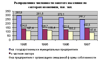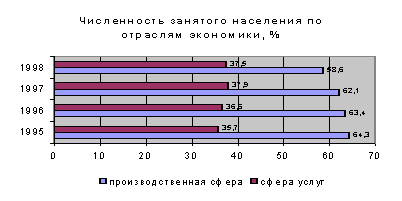 Большая часть экономически активного населения занята на государственных и муниципальных предприятиях. Уровень экономически активного населения с 1995 года остается почти неизменным - 55,5% -50% (1995 -1998 годы соответственно). Однако можно наблюдать тенденцию к увеличению уровня безработных, уровень которой повысился с 6,4% до 12, 64% и, соответственно, понизился уровень населения, занятого в экономике (с 93,6% до 87,36%).