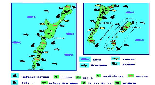 Флора и фауна Курил исключительно богаты и разнообразны. Наши острова - удивительное явление природы. Можно сказать, что они - огромный ботанический сад, где соседствуют береза и тис, ель и акация, лиственница и дикий виноград, пихта и гортензия. Растительный мир островов насчитывает 1400 видов растений. В долинах рек произрастают лиственничные леса (тополя, ивы, ольха). Преобладают лиственные породы: береза, вяз, клен, ясень, тисс, лимонник, которые придают растительности южный облик. Распространены ягодники, багульники и другие кустарниковые растения. В условиях острова проявляется гигантизм некоторых травянистых растений: гречихи сахалинской и Вейриха, белокопытника, дудника медвежьего (медвежья дудка), шеломайника и др. Они очень быстро развиваются и образуют мощные заросли. К концу лета многие травы поднимаются до 3-х метровой высоты, а знаменитое растение медвежья дудка вырастает до 4-х метров. Поражает своими размерами и белокопытник, который сахалинцы называют "лопух": в августе он достигает 3-х метров высоты, с диаметром листьев до полутора-двух метров. Курилы – единственное место в России, где произрастает лилия Глена, где в естественных условиях растут магнолии. В диком виде они встречаются только на юге Кунашира. Здесь же можно встретить редкую голубоватую ель Глена, древесина которой обладает особыми, редкостными свойствами и незаменима для создания музыкальных инструментов. На острове произрастают ценнейшие лекарственные растения: лимонник, аралия, элеутерокок. Изготавливаемые из них тонизирующие настойки успешно заменяют препараты "корня жизни" - женьшеня. Можно встретить актинидию коломикта, плоды которой содержат в десять раз больше витамина С, чем черная смородина. Произрастают 4 вида шиповника, в том числе один из самых крупноплодных – шиповник морщинистый. Вес отдельных его плодов достигает 25 граммов. На Курильских островах растут тис, пихта, аянская ель, дуб, клен, калина, бамбук, многочисленные лианы.