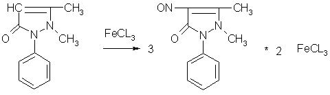 2.Антипирин дает с раствором хлорида окисного железа интенсивно красное окрашивание, обусловленное образованием комплексной соли – феррипина:
