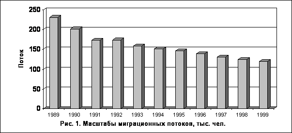Как отмечает Ж.А. Зайончковская, современные миграционные процессы в России определяют две группы факторов, воздействующих на миграции в противоположных направлениях. Первая группа факторов – распад СССР и связанные с этим процессы. После образования на территории СССР суверенных государств - бывших союзных республик, в край стали прибывать как русские (из Казахстана. Азербайджана и др. стран ближнего зарубежья), так и азербайджанцы и армяне со своих исторических родин в связи с национальными конфликтами, стихийными бедствиями, В качестве примера внутренней миграции в край следует отметить поток русских и чеченцев из Чеченской республики в связи с вооруженным конфликтом на ее территории и упадком хозяйства. Передвижение населения внутри края главным образом из сел в города обусловлено экономическими причинами. Передвижение населения в крае носит также и иной вид. Многие жители края ежедневно выезжают на работу из одного населенного пункта в другой и возвращаются на ночлег к постоянному месту жительства. Такой вид миграции - «маятниковая» - характерен для пригородов Ставрополя, городов КМВ.