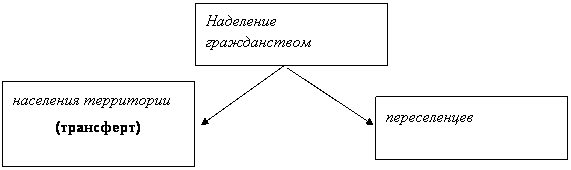В исключительном порядке 1) Коллективная натурализация 1.1 Трансферт 2) Оптация (выбор гражданства) 3) Реинтеграция (восстановление) |