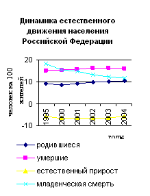Рис. 2 Динамика естественного движения населения за 1995-2004гг.