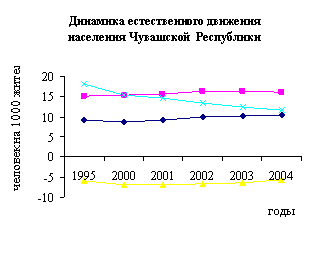 Второй составной частью естественного движения является смертность населения. По сравнению с 2003 годом в Чувашии число умерших увеличилось на 629 человек , в следствии чего смертность остается весьма высокой – 16 умерших из каждой 1000 населения в Российской Федерации, а в Чувашии 14,9.