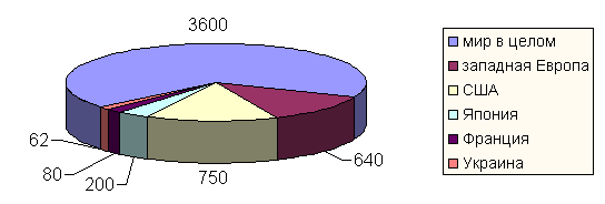 Рисунок №3 Мощность атмосферной перегонки (млн. т) в мире и отдельных странах. [6,19]