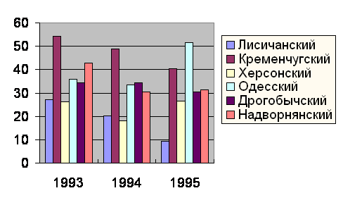 Таблица №4 Основные производственные мощности нефтеперерабатывающих заводов Украины в 1995г. [6, с. 21]