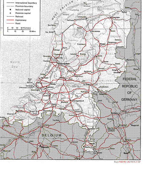 Нидерланды расположены на побережье и прилегающих Западно - Фризких островах Северного моря, т. е. в наиболее густо населенной, развитой, в промышленном отношении, части Западной Европы, там, где пересекаются европейские и межконтинентальные магистрали. Реки, прежде всего Рейн( одна из крупнейших рек Западной Европы), являются главными путями к странам и районам, удаленным от моря. Через страну проходят водные магистрали к Руру - одному из крупнейших промышленных и угледобывающих районов Западной Европы, к глубинным районам Франции, Бельгии, Швейцарии. Среди всех портов Нидерландов выдается Роттердам. Это крупный и хорошо оборудованный порт - один из лучших портов мира, ворота в Европу.