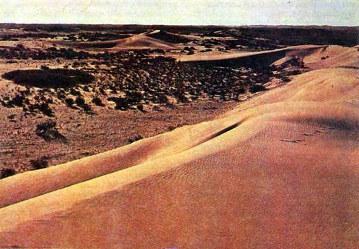В любом ландшафте можно найти взаимодействие природных элементов, цепочку связей, создающих необходимое равновесие в геобиоценотических системах. При этом количественное соотношение природных компонентов может быть разное. Способность геобиоценозов сохранять свои функции на грани критического, угнетенного состояния и затем восстанавливать нарушенное равновесие составляет важное свойство географической среды, отвечает жизненным интересам органического мира и в конечном счете людей. Пустыне в равной степени свойственны и природные связи, и равновесие, и способность сохранять продуктивность при меняющемся соотношении природных элементов. Но сами связи и критическая точка при угнетенном состоянии природных сил у пустыни тоньше, чувствительнее, реактивнее. Чрезмерное напряжение или нарушение связей быстро переходит в экстремальное состояние, вызывающее стихийное бедствие. Опасны для пустынной растительности засухи, чрезмерный дефицит влаги в воздухе и почве, песчаные бури, резкое понижение уровня грунтовых вод, высыхание колодцев, изменение химического состава колодезных вод (минерализация их, повышенное присутствие сероводорода) и другие, не менее серьезные изменения. В условиях пустыни возможность пробудить к действию экстремальные силы природы легче, чем в другом ландшафте. Они опасны своей необратимостью или очень медленно протекающими процессами самовосстановления. Поэтому пути и средства освоения природных ресурсов пустынь, способы адаптации живых организмов, в том числе людей, их расселение, возникающие при этом взаимоотношения с местной природой совсем не похожи на те, что наблюдаются в других природных зонах.