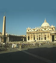 Земли Ватикана священны, и поэтому считается, что тут цветет и плодоносит все, что только посажено. Сады Ватикана уникальны. Тут растут тысячи диковинных растений, собранных со всего света. Гордость ботанического сада – три реликтовых китайских дерева с мудреным названием. В самом Китае такое дерево осталось в единственном экземпляре. Можно сказать, что начинается Ватикан с собора святого Петра, стоящего на огромной круглой площади. Собор святого Петра было решено строить еще в 324 году на месте, где по преданию, и был замучен святой Петр. Варвары распяли его вниз головой. Было тогда святому мученику 95 лет. Собор, который посещаю туристы сейчас, не первое здание на этом месте. Но нынешний собор тоже имеет возраст почтенный. Дата его рождения – 1506 год. Первоначальный проект принадлежит архитектору Браманте. А затем усовершенствован Рафаэлем и Микеланджело. Купол, поднятый на высоту 132 метра, считается не только шедевром с точки зрения живописи и архитектуры, но и инженерно-строительного дела. Автор идеи – Микеланджело. Ему в ту пору было 72 года. Это последняя его работа. На купол собора святого Петра ведет длиннющая лестница. Но вид, открывающийся сверху на Рим и сады Ватикана, окупает все физические затраты. Кажется на ладони можно уместить всю площадь Св. Петра, образованную из двух полукруглых колоннад и фасада самого собора.