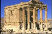 Храм Баала разместился на искусственном холме, скрывавшем остатки более раннего языческого храма. План его носит типично восточный характер: четырехугольный двор с крытыми галереями, в центре – собственно храм, перед которым помещен алтарь для жертвоприношений, комната для угощений и священный бассейн. К каждой стороне примыкает два ряда колонн, которые были когда-то украшены капителями из позолоченной бронзы. В южной и восточной сторонах храма – две ниши с изображениями пальмирских богов. Это явление типично сирийское. Ни греки, ни римляне не помещали богов в ниши, а ставили их на пьедестал.