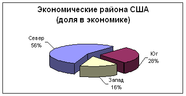 В настоящее время на территории США можно выделить три экономических района, которые кратко можно назвать Север (дает 2/3 продукции обрабатываемой промышленности, основную часть зерновых культур, молока и мяса), Юг, Запад.
