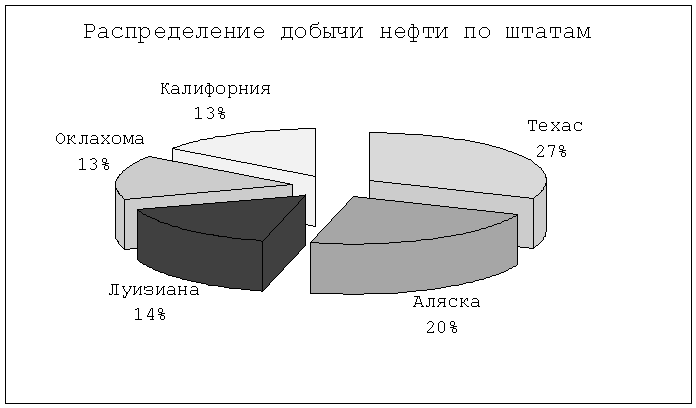 Топливно-энергетический комплекс. Ведущая роль в энергохозяйстве принадлежит нефти и природному газу. Свыше половины добываемой в стране нефти и еще больше природного газа дает штат Техас с прилегающими к нему территориями юга.
