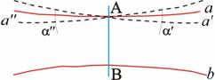 также не пересекает прямую b. Рассматривая два получающихся острых угла α' и α'' (симметричных друг другу), Лежандр строго доказывает, что прямая а как при продлении её вправо, так и при продлении её влево всё более удаляется от прямой b. Но прямые а и b не могут вести себя подобным образом: если они не пересекаются, то должны находиться на ограниченном расстоянии друг от друга на всём своём протяжении. Рассуждения Лежандра кажутся весьма убедительными, однако на самом деле это просто другая аксиома: она следует из постулата о параллельных, и, в свою очередь, из неё вытекает справедливость постулата.