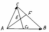Задача. Через середину Е медианы СС1 треугольника АВС проведена прямая АЕ, пересекающая сторону ВС в точке F. Вычислить АЕ : ЕF и СF : FВ.
