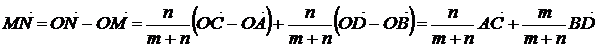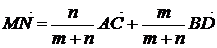 III Основное соотношение. Если точки М и N делят отрезки АВ и CD соответственно в равных отношениях так, что AM : MB = CN : ND = m : n, то выполняется равенство.