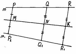 Задача. На прямой m даны три точки Р, Q, R, а на прямой m1 -три точки P1, Q1, R1 причем