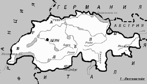 Швейцария (Швейцарская республика) - малое государство в Центральной Европе. Датой образования Швейцарии считается 1 августа 1291 года, когда 3 кантона объединились в конфедерацию, и только согласно конституции 1848 года союз государств превратился в единое государство - федеративную Швейцарию. | |