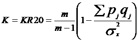 Однако наибольшее распространение на практике получило применение для расчета надежности теста так называемой формулы KR-20 [17]: