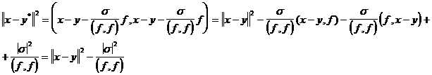 , а это противоречит предположению, что y- есть наименее удалённая точка от x подпространства G. Вектор y из G, обладающий тем свойством, что разность x-y ортогональна к G, естественно назвать проекцией x на G.