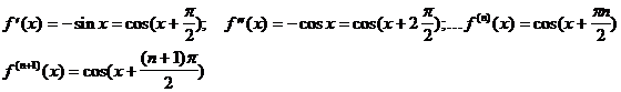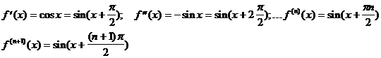 Рассмотрим функцию f(x)=sinx. Найдём производную n+1- го порядка.