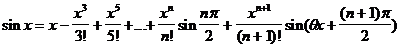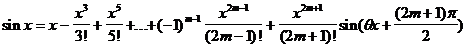 . Следовательно, вместо функции f(x)=sinx можно рассматривать алгебраический многочлен, который приближённо заменяет её. Говорят, что указанный многочлен приближает данную функцию. Оценка такого приближения определяется формулой: