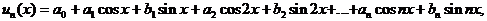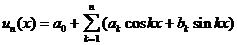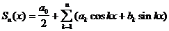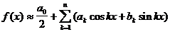 Эта сумма является тригонометрическим многочленом n-го порядка, начальный член которого представлен в виде a0/2. В качестве приближения функции f(x) с периодом 2