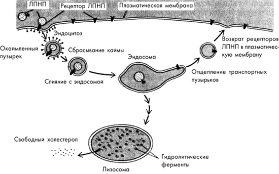 Рис.4 Транспорт ЛПНП в клетку и деградация их в лизосоме до холестерола.