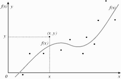 Учитывая вышеизложенное, используют критерий наименьших квадратов, т.е. определяют такую функциональную зависимость, при которой S =