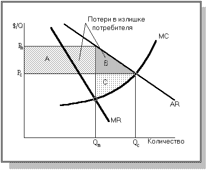 Рис.6 Графическое изображение чистых убытков от монопольной власти |