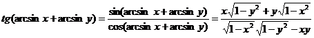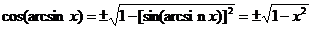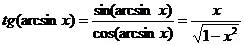 Тригонометрические функции от одного и того же аргумента выражаются алгебраически одна через другую, поэтому в результате выполнения какой-либо тригонометрической операции над любой из аркфункций получается алгебраическое выражение.