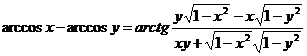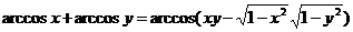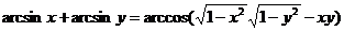 Так как значение всякой аркфункции от положительного аргумента заключено в интервале (0; π/2) то сумму двух аркфункций от положительных аргументов можно представить в виде арккосинуса, а также в виде арккотангенса, а разность двух аркфункций от положительных аргументов можно представить в виде арккосинуса, а также в виде арктангенса.