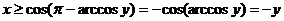 расположены в промежутке [0;π] и что в этом промежутке косинус убывает, получим