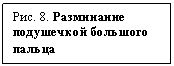Отягощение может быть проведено перпендикулярно (всей ладонью или ребром ладони) над бугром большого пальца (рис. 8).