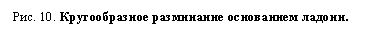 Этот прием выполняют как на крупных мышцах (ягодичная, большая грудная, четырехглавая бедра), так и на плоских (длиннейшая мышца спины, передние большие берцовые). Ладонь накладывают на массируемую мышцу и основанием ладони разминают ее, смещая круговыми движениями в сторону мизинца (слегка согнутые пальцы скользят пассивно). Массажист располагается продольно по отношению к массируемому участку тела (рис. 10).