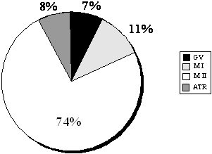 На рис.2 представлены данные по распределению ооцитов, полученных в ходе стимуляции суперовуляции, по степени зрелости. Оценка производилась после удаления клеток cumulus.