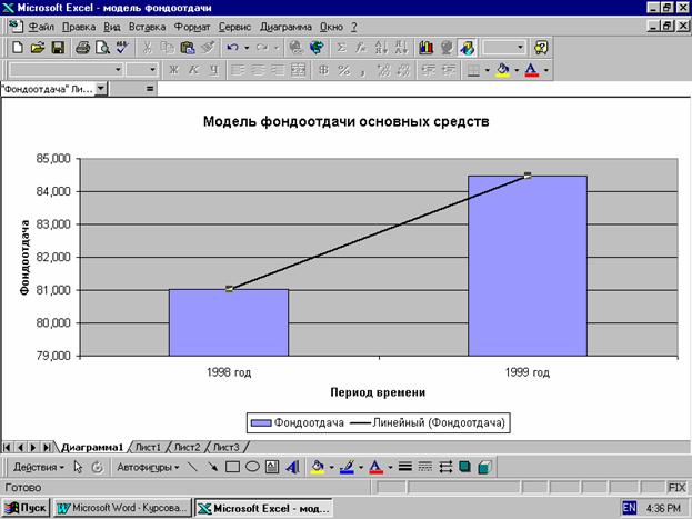 Рисунок 3.3.2 Модель фондоотдачи основных средств.