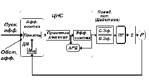 Опыт человека убеждает в том, что стремясь к достижению какой-либо цели, основные параметры цели конкретизируются изначально мысленно, т. е. идеально. В последующем идеальная модель результатов (акцептор результатов действия) сопоставляется с результатами реальными. Если то, что человек “представлял” себе совпало с тем, что получилось в действительности - поведенческий акт заканчивается к полному удовлетворению субъекта, если совпадения нет, возникает чувство досады, неудовлетворенности содеянным. Эти эмоциональные реакции реализуются через активацию аппарата эмоций (АЭм) (рис. 10) со стороны акцептора результатов действия.