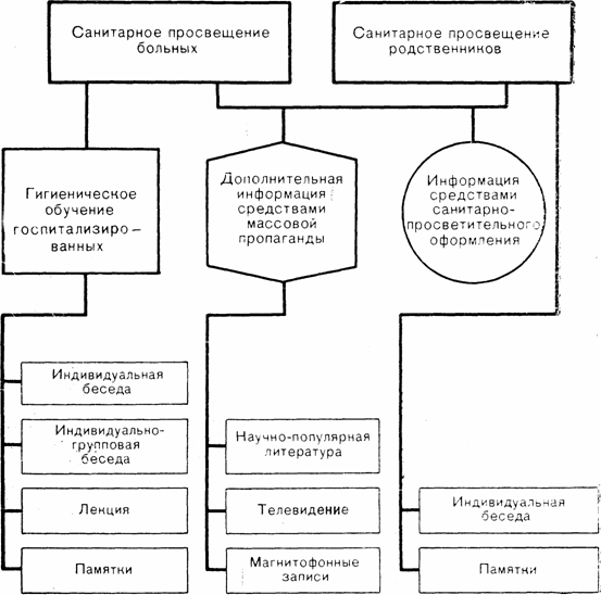 Методика гигиенического воспитания больных дифференцируется по 2 направлениям: санитарное просвещение больных с острыми и хроническими заболеваниями.